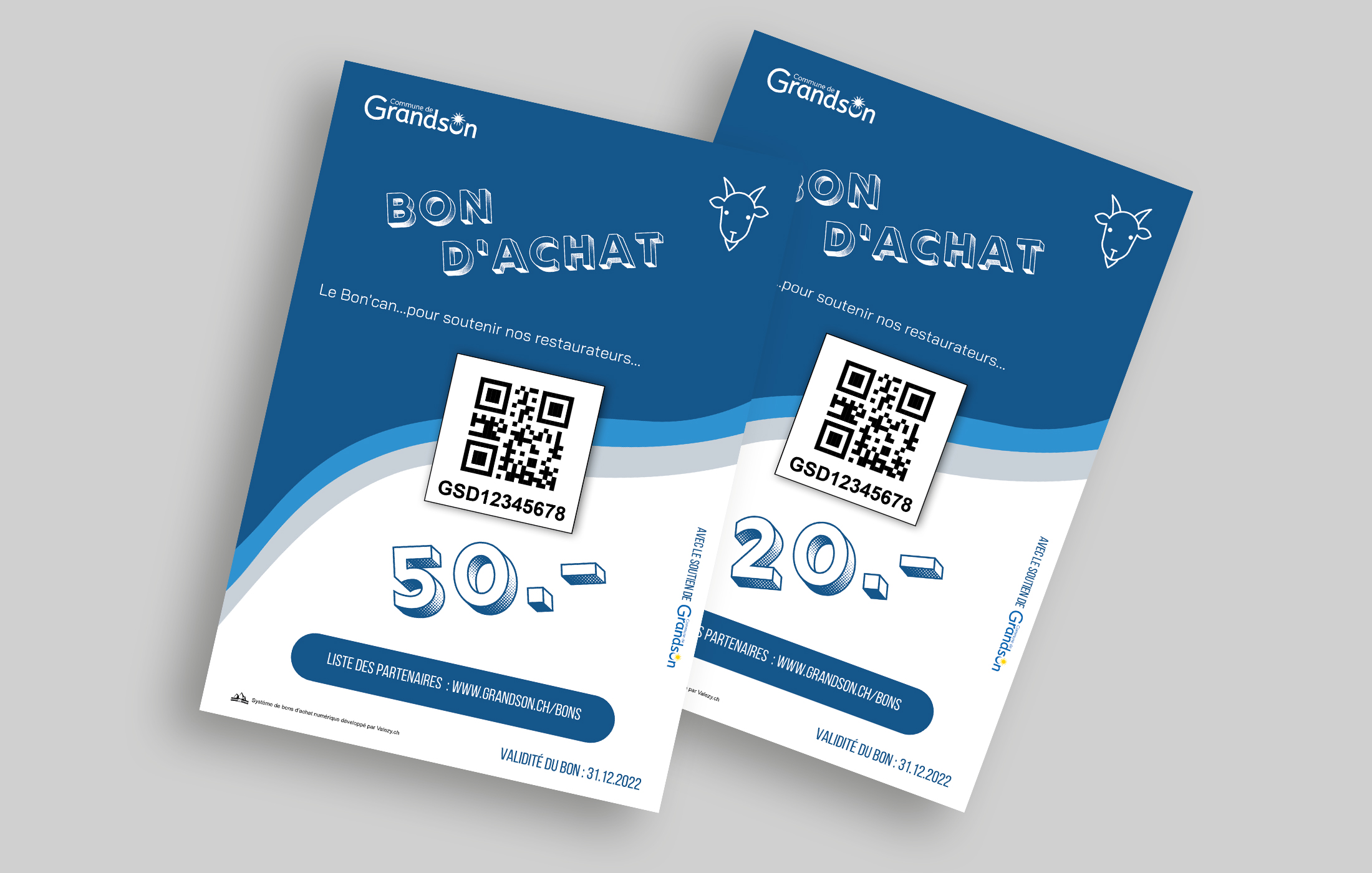 Action de soutien aux restaurateurs grandsonnois. Des bons d’une valeur de CHF 50.- et CHF 20.- sont vendus avec une réduction de 20% offerte par la Commune. Les restaurateurs reçoivent 10% de supplément lors du remboursement et chaque restaurant a un quota de bons disponibles.